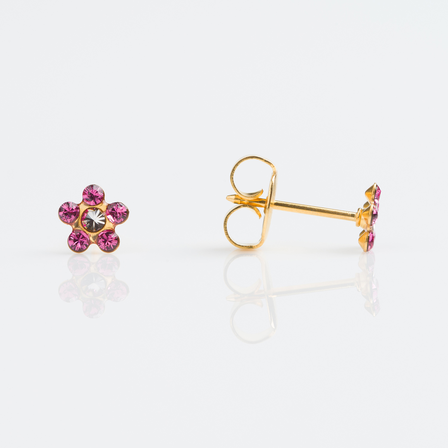 The 18ct yellow gold 6-stone daisy rose crystal stud earring is a charming and elegant accessory that brings a touch of femininity to any look. Featuring a delicate daisy design with six sparkling rose-coloured crystals, this earring is beautifully crafted to capture light and create a subtle yet radiant sparkle. The warm 18ct yellow gold setting enhances the soft pink hue of the crystals, adding a luxurious finish to this timeless piece.