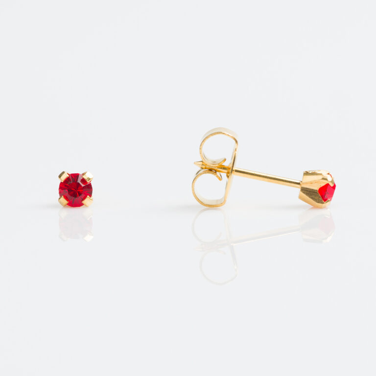 Tiny Tips – 24ct Gold Plated 3mm July Ruby Stud Earring