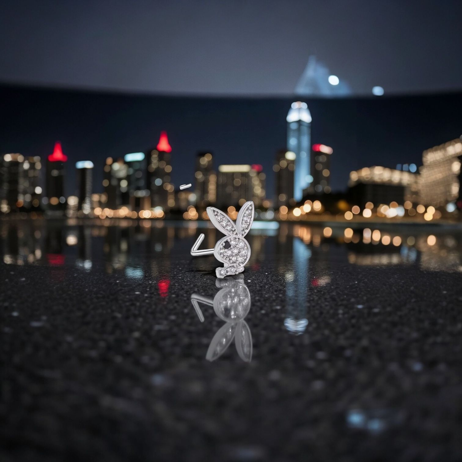 316L Surgical Steel L-Shaped Playboy Bunny Nose Stud