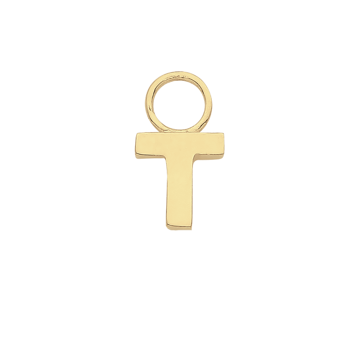 This 9ct Yellow Gold Initial Earring Charm T is the epitome of timeless elegance. Designed to complement any occasion, this charm stands out with its understated sophistication, making it a versatile addition to your jewelry collection. Its sleek and simple design ensures that it maintains a refined presence, even when worn alone.