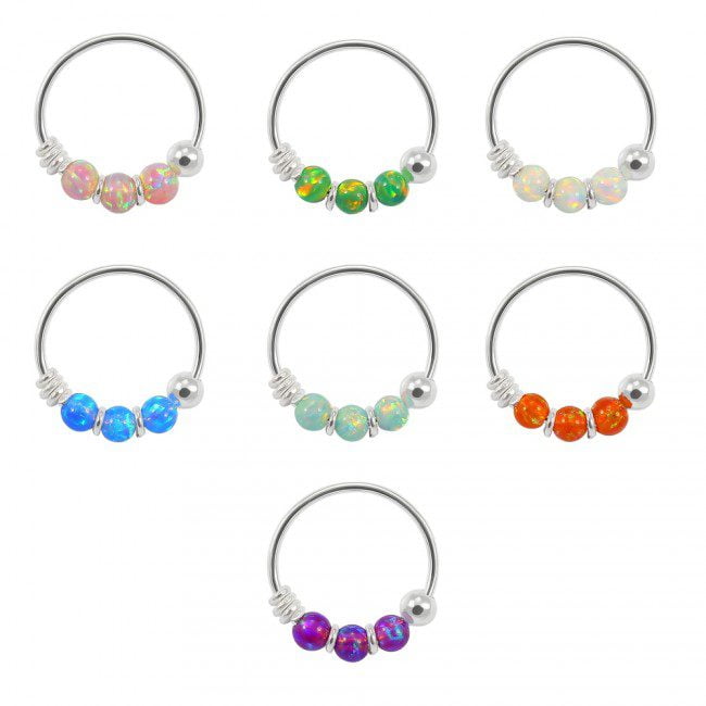 This 9ct white gold opal stone hoop 1.2x8mm is perfectly suited for any occasion. A clicker hoop is the perfect jewellery for cartilage piercings or for a nose piercing. It is an elegant and beautiful piece of jewellery which can go well with other pieces. Browse through our collection to find the best piece to fit your unique style.