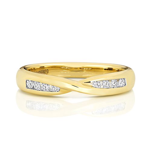 9ct Yellow Gold Diamond Crossover Wedding Band Channel Set
