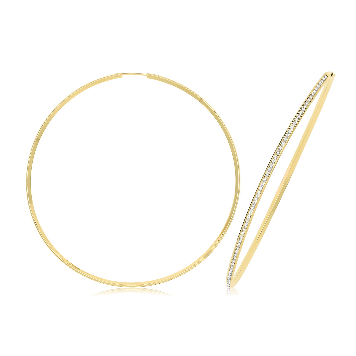 9ct Yellow Gold 40mm Thin CZ Hoops Earring 4.00g