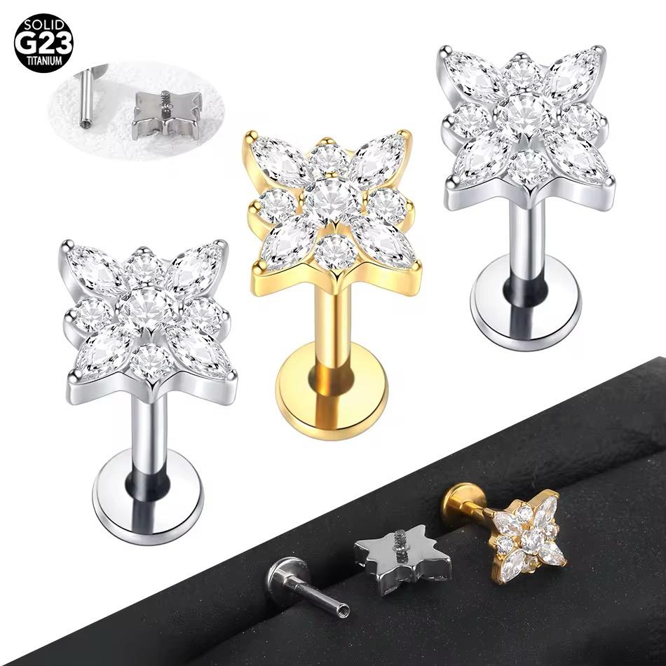 ASTM F136 Titanium Flower Internally Threaded Flat Back Labret Piercing Body Jewellery- Gold
