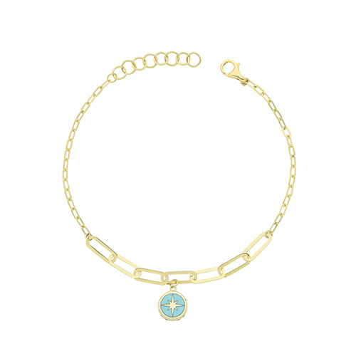 9ct Yellow Gold Turquoise Enamel North Star Bracelet 2.05g