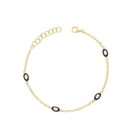The warm tone of the yellow gold complements the enamel detailing perfectly, creating a balanced and elegant finish. A fine, polished chain enhances the bracelet’s delicate aesthetic, securing comfortably with a dependable clasp for everyday confidence.