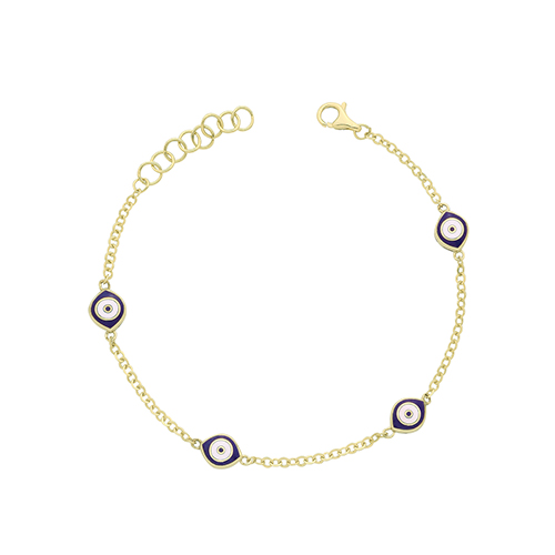 9ct Yellow Gold White/ Dark Blue Enamel Evil Eye Bracelet 3.00g