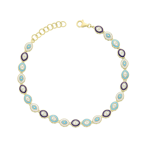 9ct Yellow Gold White/Turquoise Enamel/ Dark Blue Evil Eye Bracelet