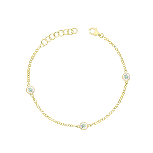 9ct Yellow Gold White/Turquoise Enamel Evil Eye Bracelet