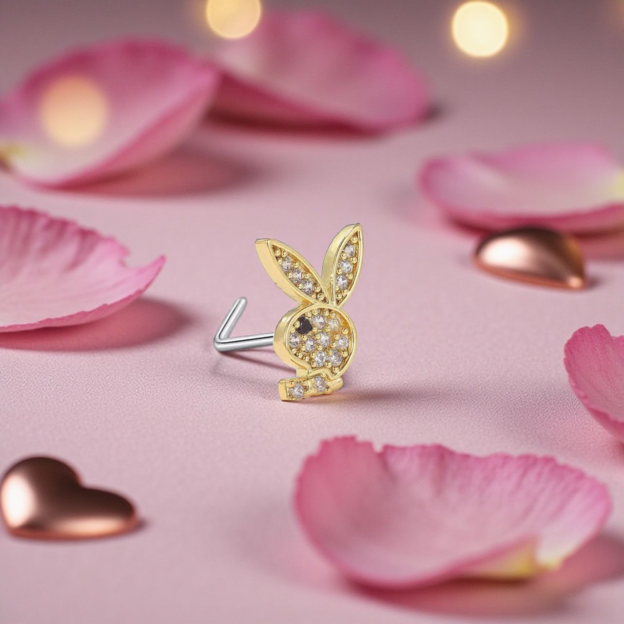 316L Surgical Steel Gold Colour L-Shaped Playboy Bunny Nose Stud