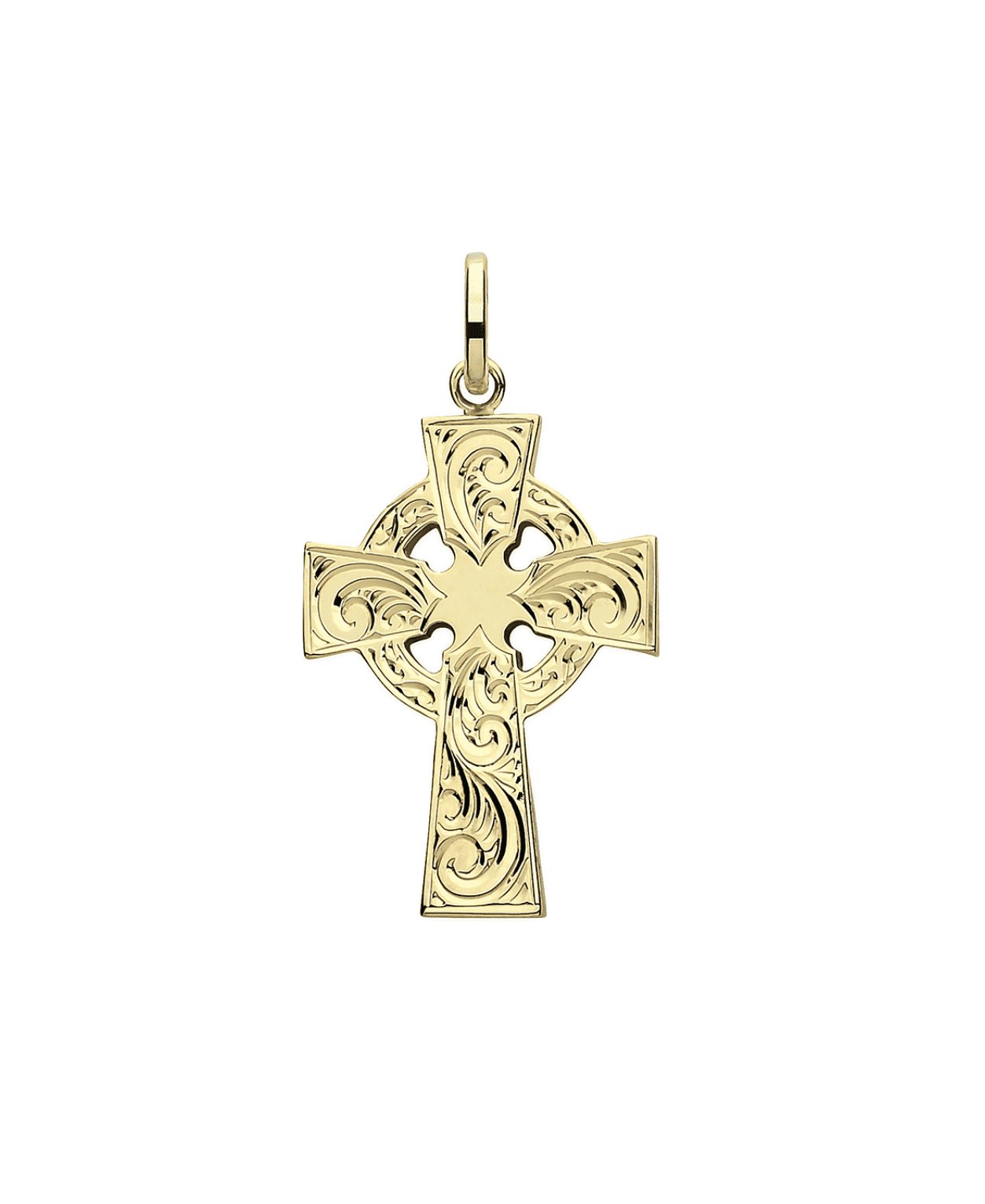 9ct Yellow Gold Semi Solid Cross Engraved 3.10g