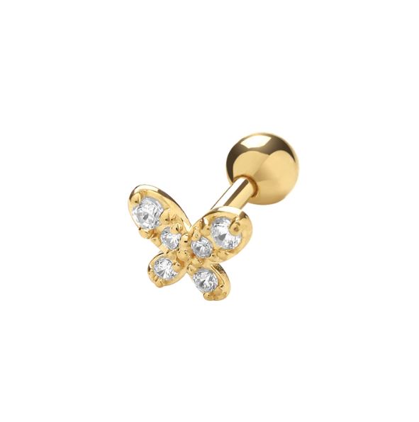 This 9ct Yellow Gold CZ Butterfly Cartilage 1.0mm x 6mm Ball Back Post Stud Helix Earring 0.26g is a lovely piece of universal body piercing jewellery. It is suitable for most piercings.