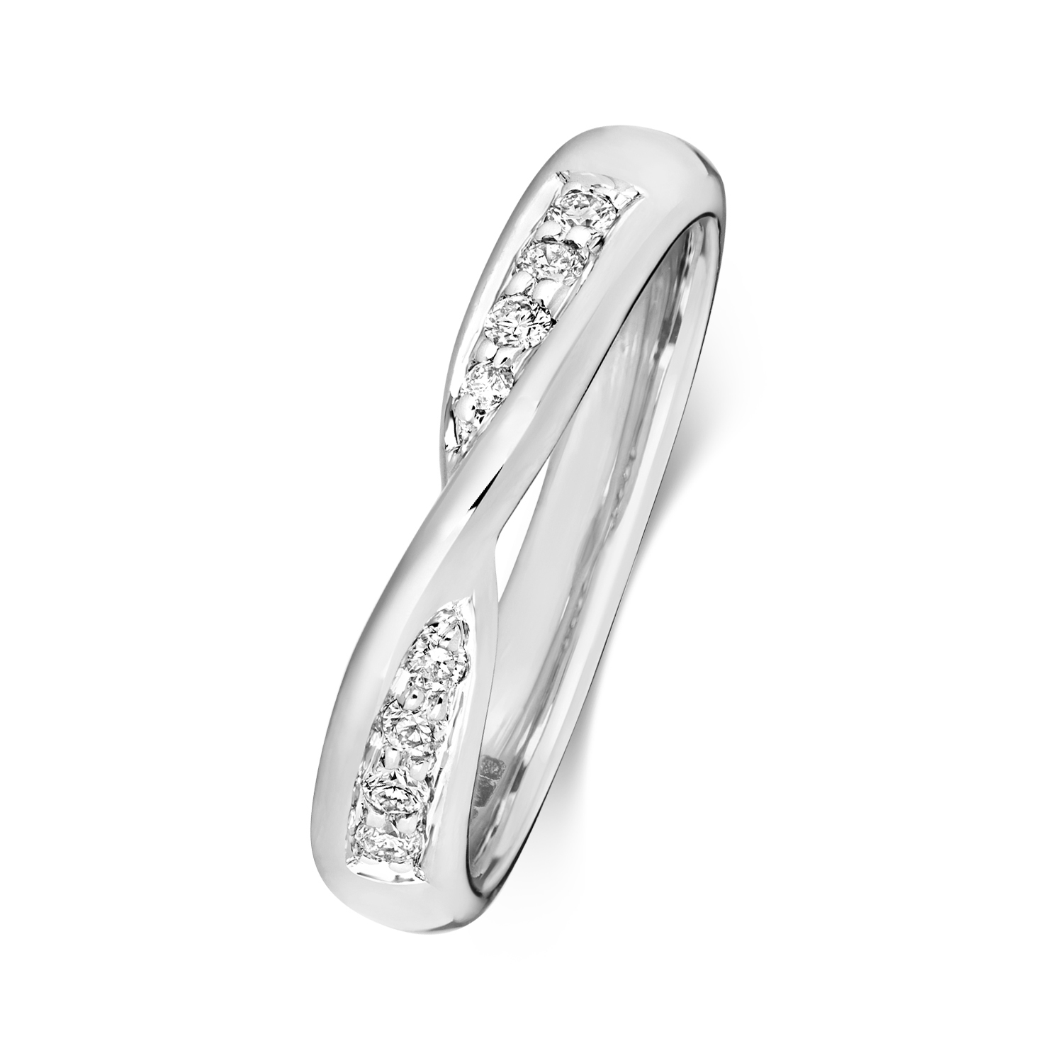 18ct White Gold Crossover Band with Grain Set Diamonds