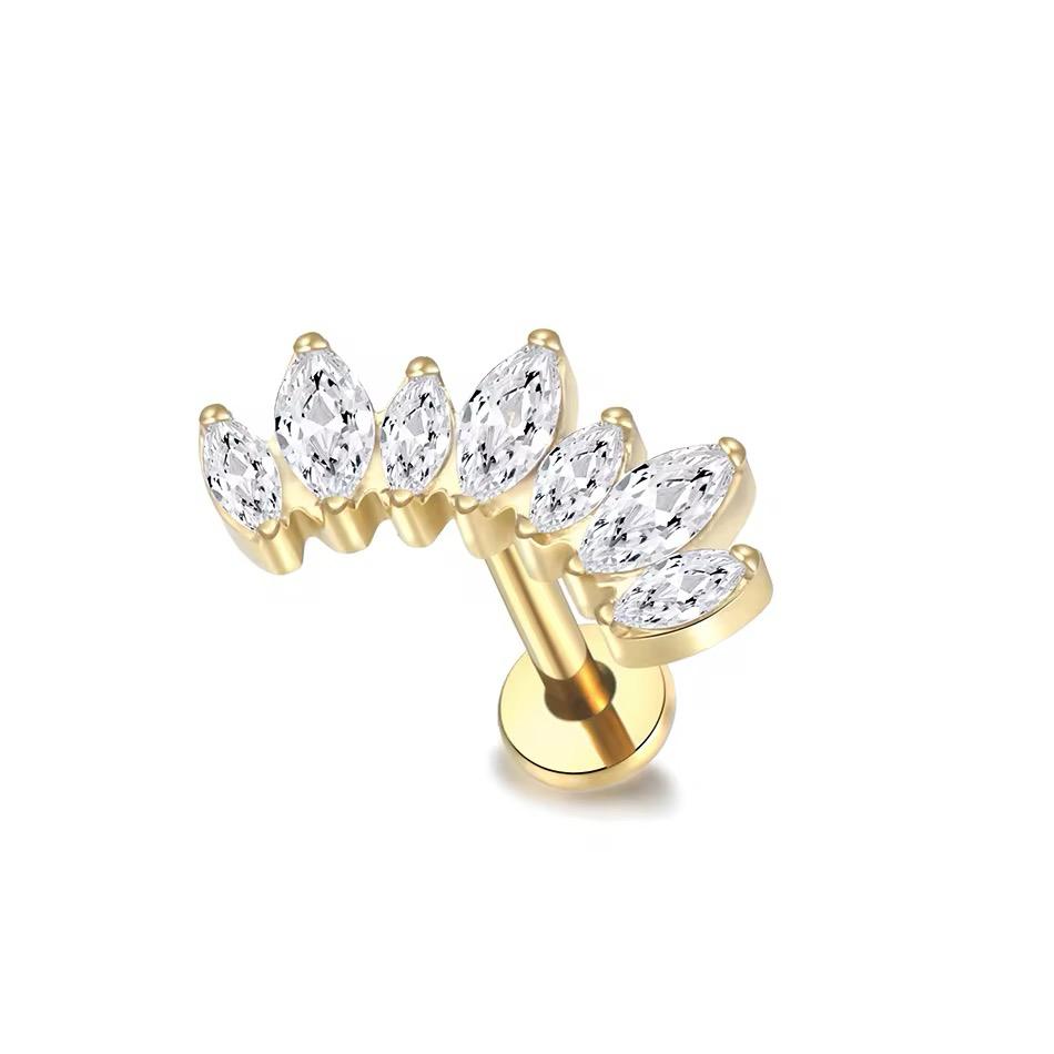 ASTM F136 Titanium Crown Internally Threaded Flat Back Labret Piercing Body Jewellery- Gold