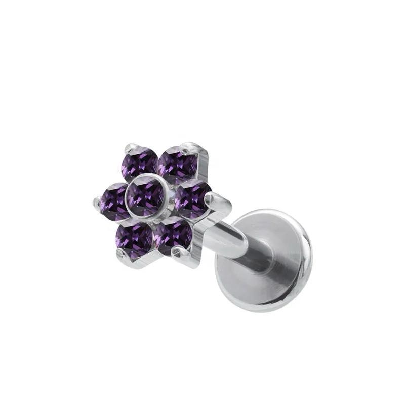 Titanium Grade 23 CZ 5mm Flower Internal Thread Labret Flatback Earring