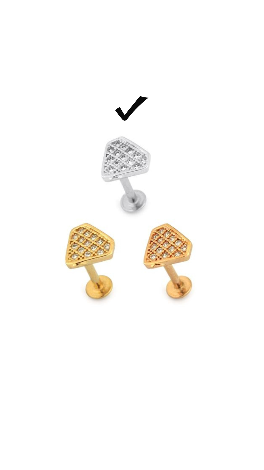 316L Surgical Steel Micro Jewelled Diamond Shape Ear Stud Ballback