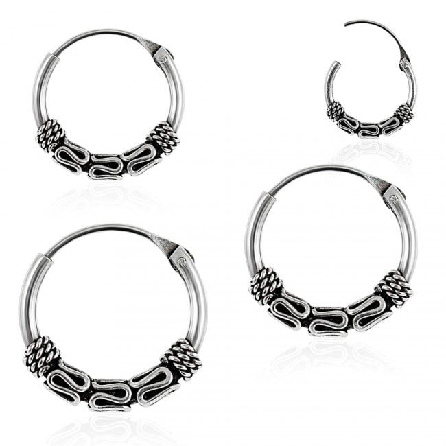 925 Sterling Silver Bali Style Hinged Hoop (Pair)