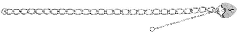 Silver Ladies’ Charm Bracelet with Heart Padlock And Safety Chain