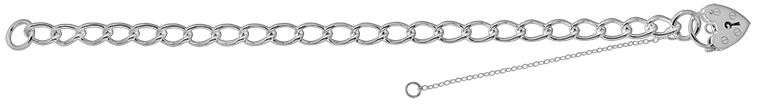Silver Ladies’ Charm Bracelet with Heart Padlock And Safety Chain