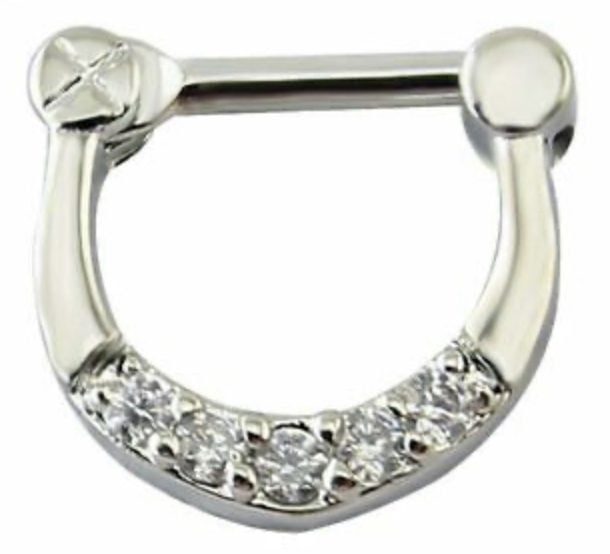 Sparkling Cubic Zirconia Septum Or Daith Clicker 316L Surgical Steel Top Quality