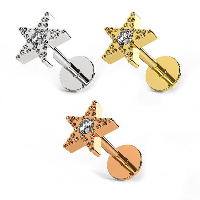 This 316L Stainless Steel CZ Star Flat Back is perfectly suited for any occasion. It has cubic zirconia gems on it to make it shine brightly and stand out in the crowd.