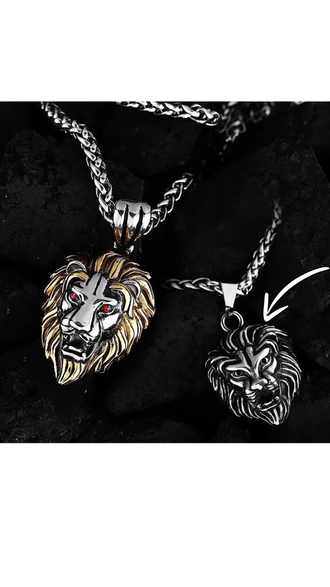 Available in a sleek silver finish or a striking silver with gold accents, this pendant offers versatile styling options to suit your preference. Crafted from high-quality stainless steel, it is resistant to rust and tarnish, ensuring long-lasting brilliance and durability. Whether worn with a casual outfit or as a standout piece for formal occasions, this lion pendant adds an element of sophistication and power to your look.