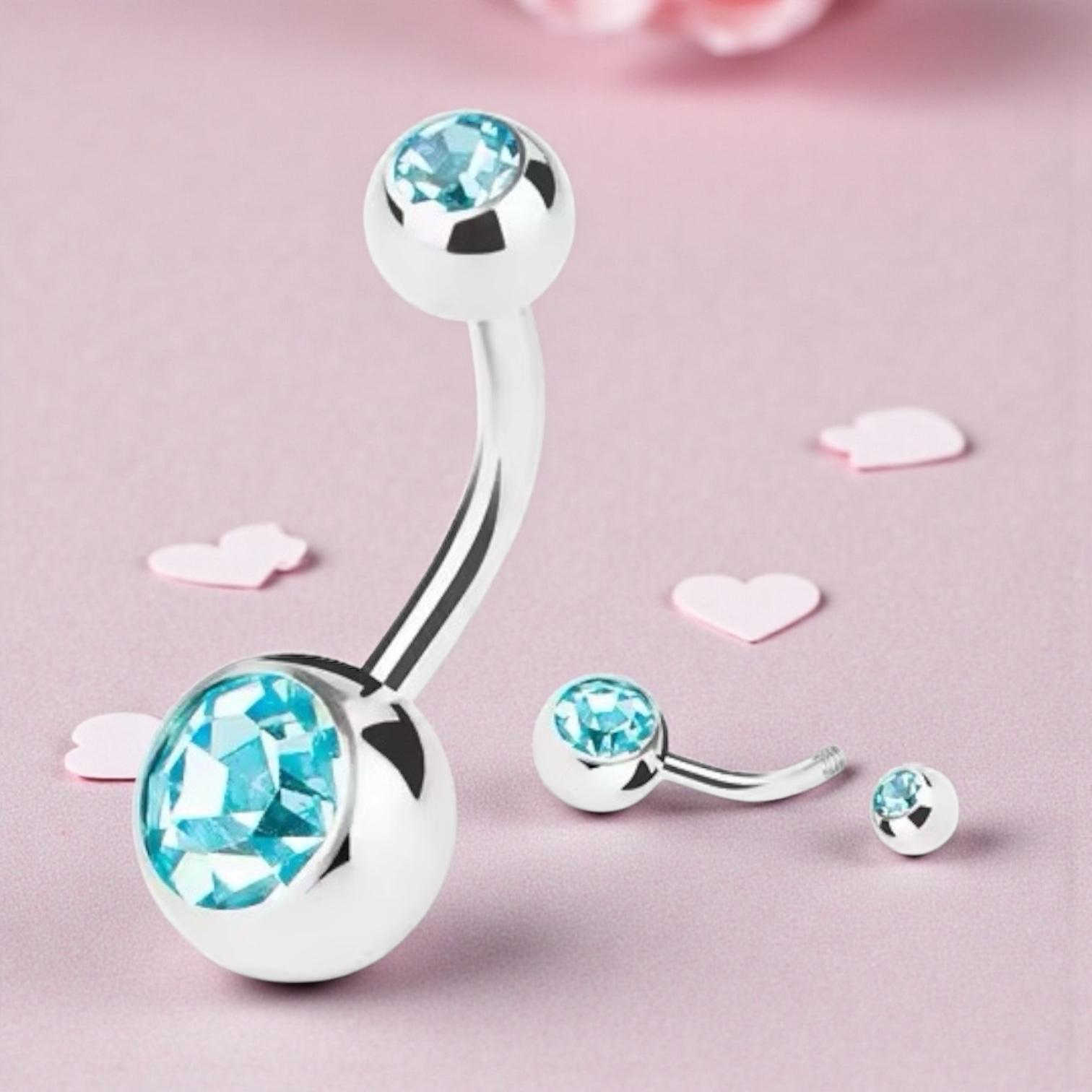316L Surgical Steel Belly Bar Ring for Navel Piercing- Light Blue