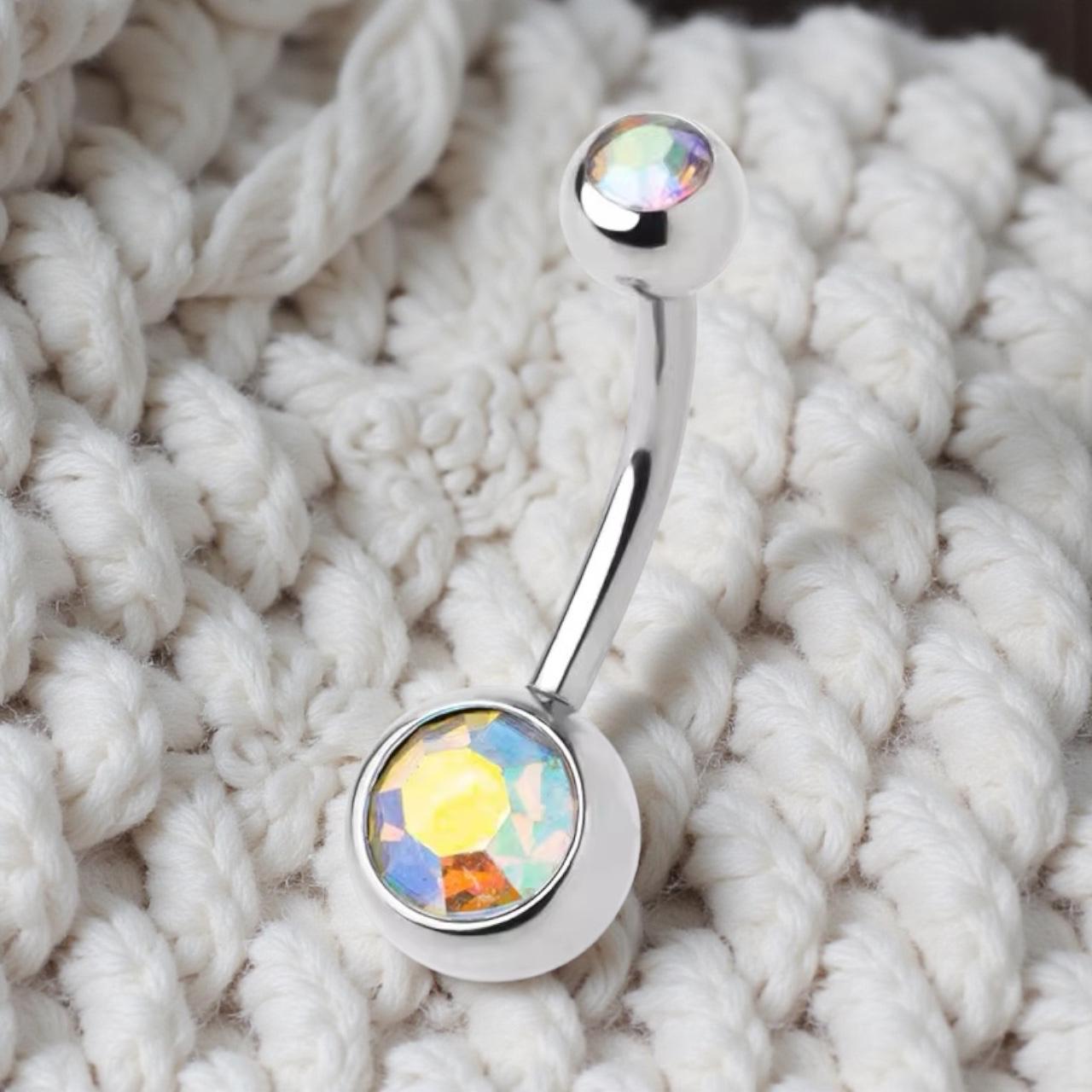 316L Surgical Steel Double Jewelled Belly Bar Ring for Navel Piercing- Clear