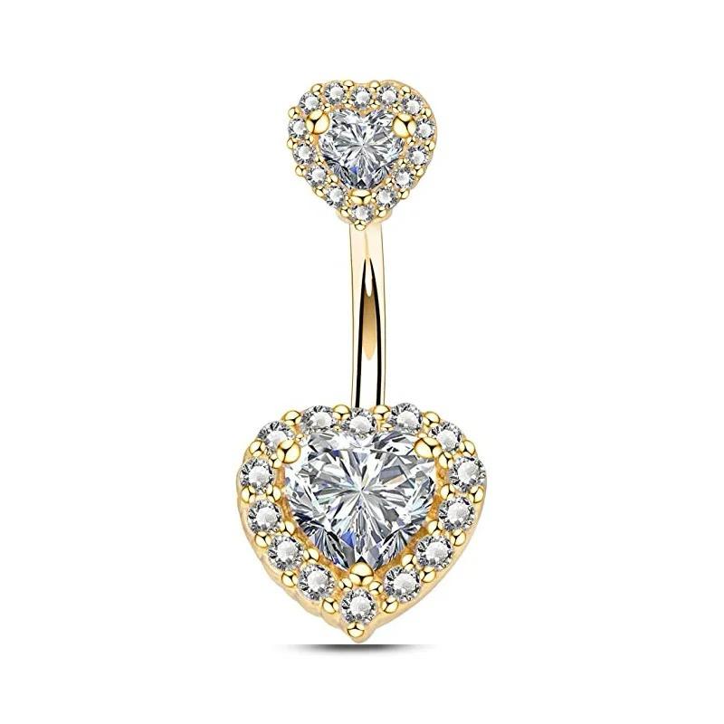 With a secure ball closure, this belly bar is designed for comfort and stability, ensuring it stays securely in place throughout the day. The double heart motif offers a timeless appeal, perfect for anyone looking to express a bit of romance or add a playful detail to their style. Ideal as a personal treat or a thoughtful gift, this 316L surgical steel double heart belly bar navel ring combines quality, comfort, and a hint of love in a piece that’s sure to be cherished.