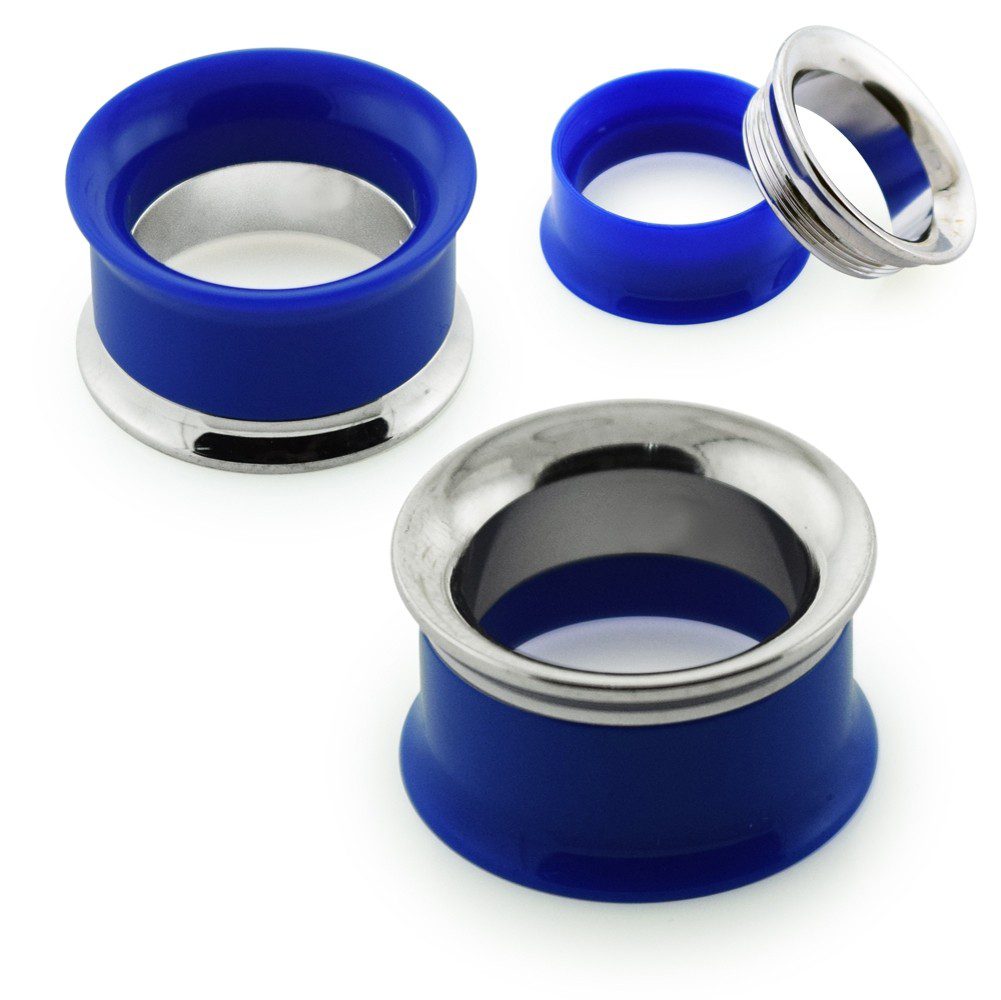 Dark Blue UV Acrylic With 316L Surgical Steel Internal Thread Tunnel