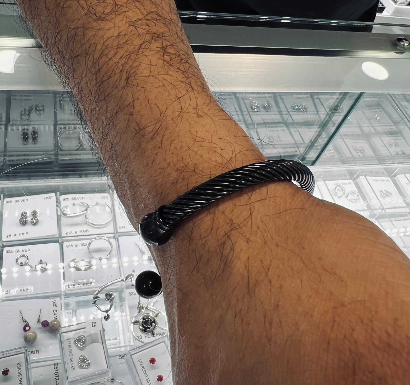 This 316L stainless steel Black coloured bracelet is a stylish and durable accessory, perfect for those who appreciate a sleek, modern look. Made from high-grade 316L stainless steel, it resists tarnishing and corrosion, maintaining its polished Black finish even with everyday wear. Its robust design makes it an ideal, affordable gift for men, but the adjustable length also allows it to comfortably fit women with larger wrists, offering versatility for any style.