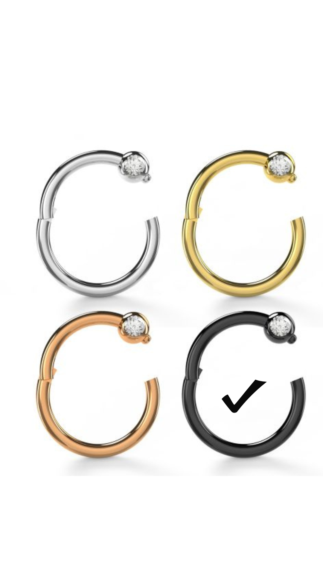 The 316L Surgical Steel BCR Clicker Piercing Ring, available in 1.2mm and 1.6mm sizes, is a versatile and durable piece of body jewellery perfect for a variety of piercings, including earlobes, cartilage, and nose. Made from high-quality 316L surgical steel, it offers excellent resistance to corrosion, tarnish, and staining, making it ideal for sensitive skin and ensuring long-lasting wear. The innovative clicker mechanism allows for easy insertion and removal without the need to detach a separate ball, providing a secure and comfortable fit. Its sleek and polished finish adds a timeless and elegant touch, making it suitable for both everyday wear and special occasions. Whether you need a reliable piece for multiple piercings or want to enhance your style, this BCR clicker ring combines functionality, durability, and sophistication.