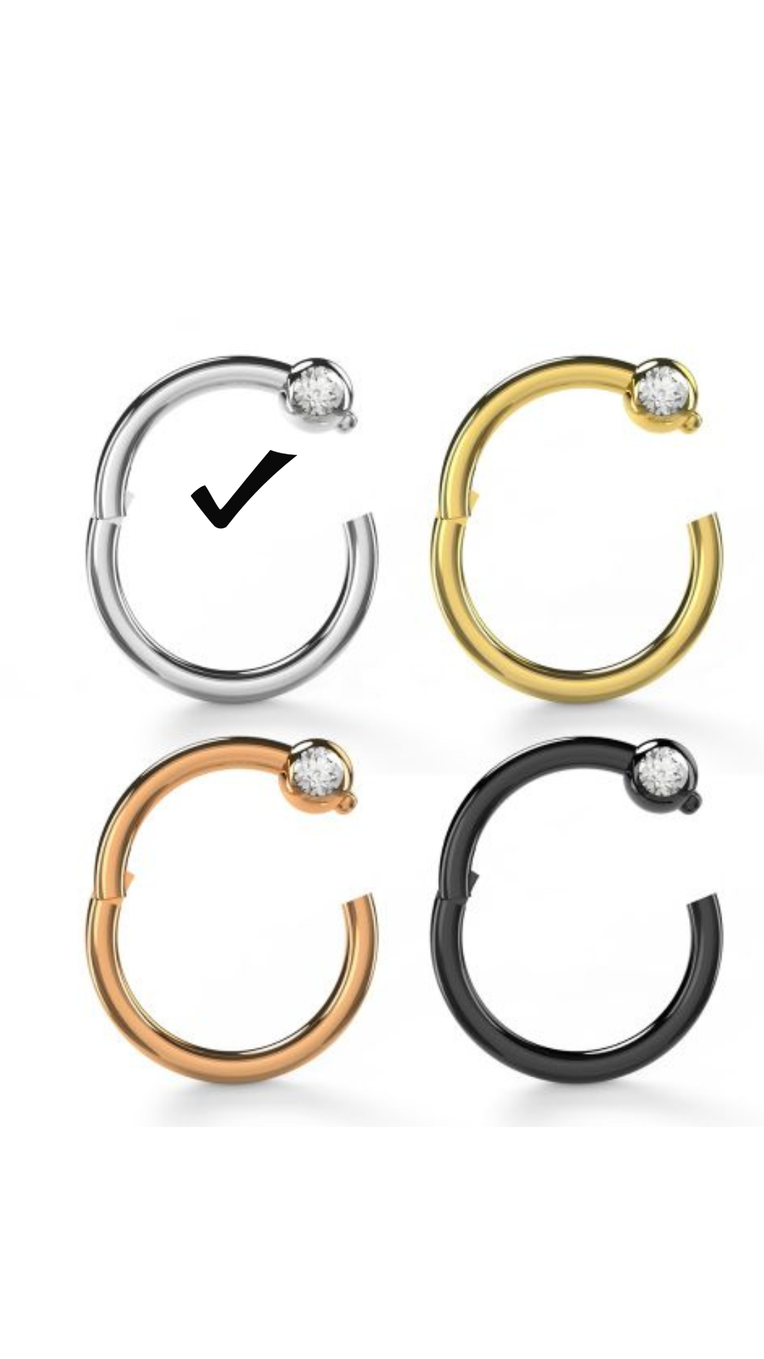 The 316L Surgical Steel BCR Clicker Piercing Ring, available in 1.2mm and 1.6mm sizes, is a versatile and durable piece of body jewellery perfect for a variety of piercings, including earlobes, cartilage, and nose. Made from high-quality 316L surgical steel, it offers excellent resistance to corrosion, tarnish, and staining, making it ideal for sensitive skin and ensuring long-lasting wear. The innovative clicker mechanism allows for easy insertion and removal without the need to detach a separate ball, providing a secure and comfortable fit. Its sleek and polished finish adds a timeless and elegant touch, making it suitable for both everyday wear and special occasions. Whether you need a reliable piece for multiple piercings or want to enhance your style, this BCR clicker ring combines functionality, durability, and sophistication.