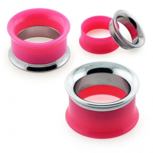Pink UV Acrylic With 316L Surgical Steel Internal Thread Tunnel