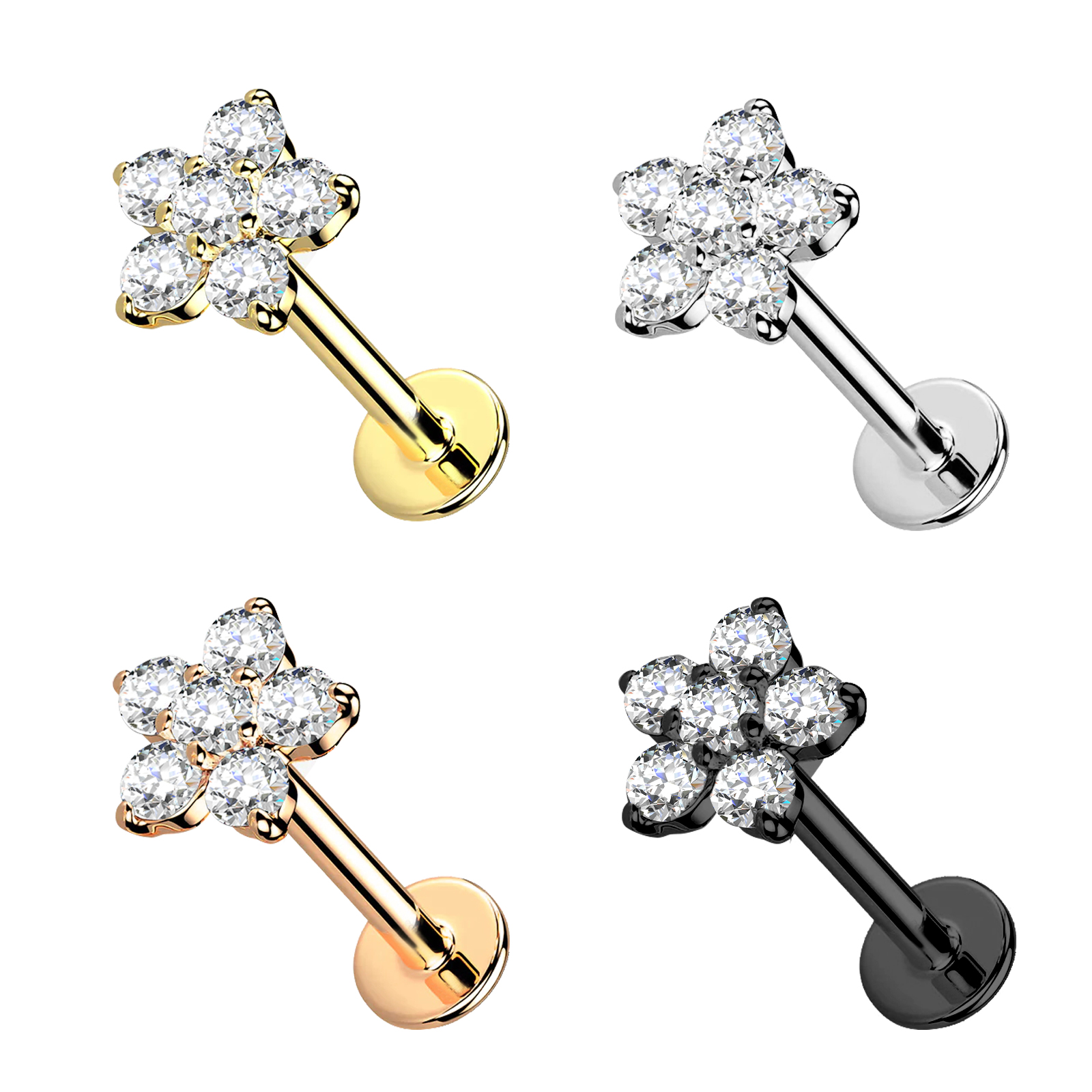 Flower Shaped Stainless Steel Internally Threaded labret Flat Back
