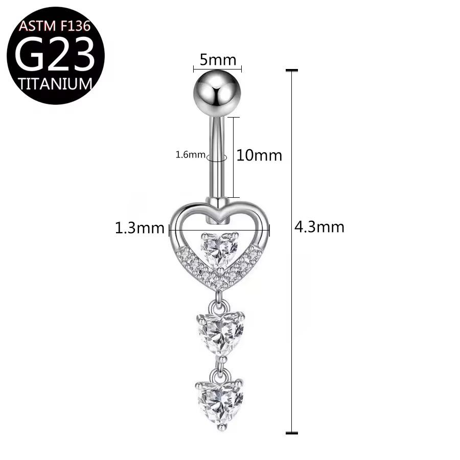 New Karma Titanium G23 Hanging Heart Belly Bar- Clear