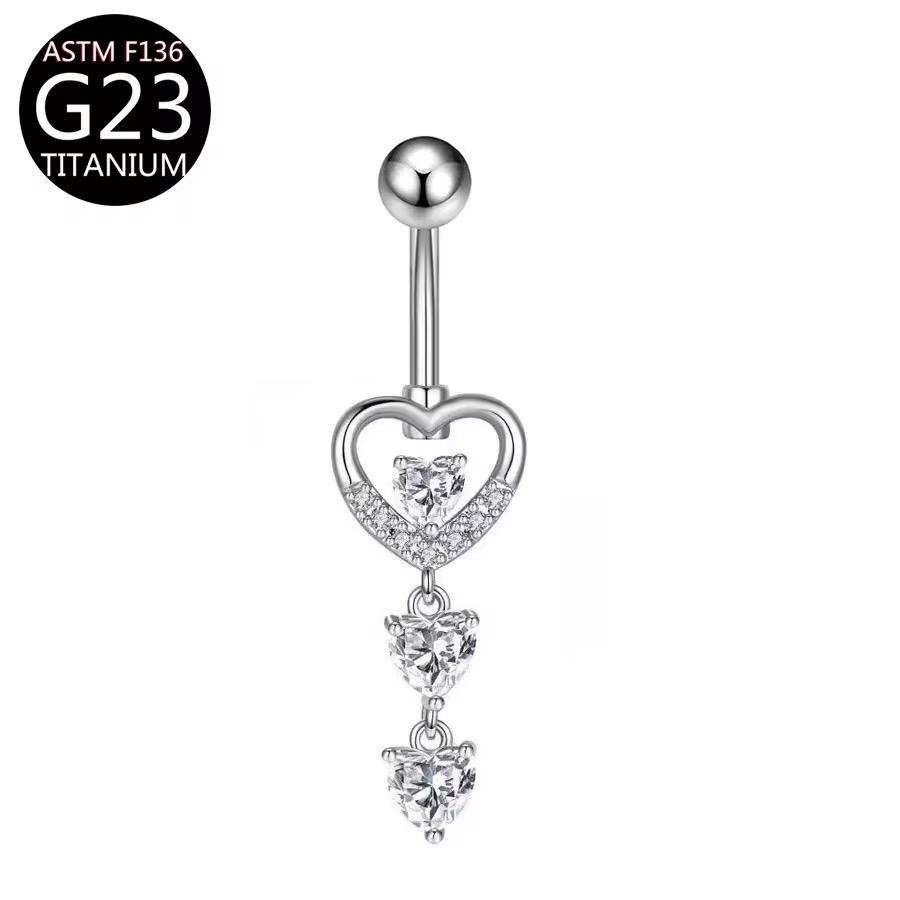 Elegant and lightweight, the New Karma Titanium G23 Hanging Heart Belly Bar is the ultimate combination of style and comfort. Designed with premium ASTM F136 titanium, renowned for its hypoallergenic and durable properties, this navel bar is perfect for sensitive skin and everyday wear. The titanium material ensures long-lasting shine and corrosion resistance, ideal for those seeking quality and style.