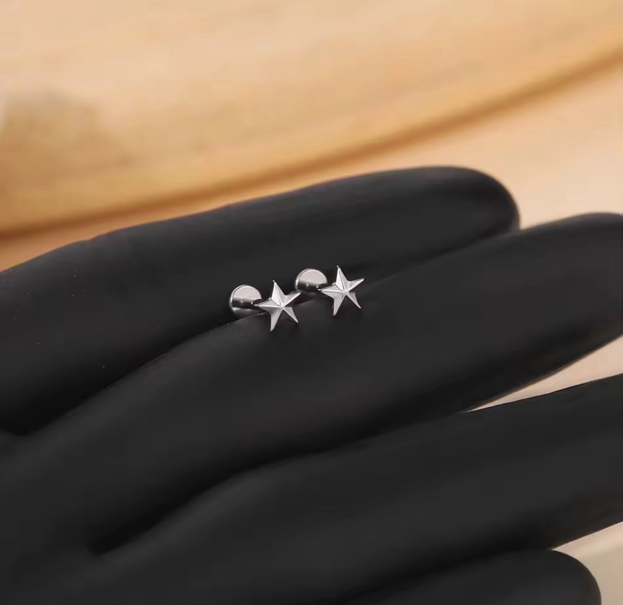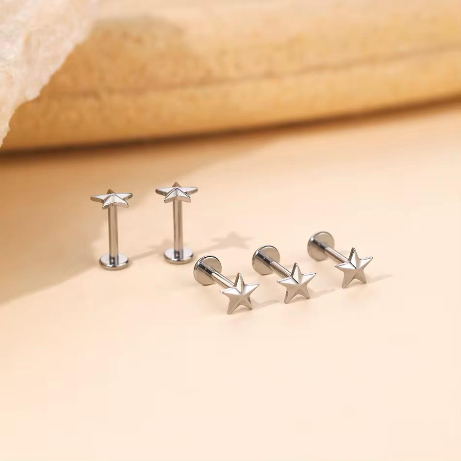 The flatback design ensures maximum comfort, reducing irritation during sleep or daily activities, while the internal threading provides a smooth, secure fit that’s gentle on piercings. The delicate star top adds a playful yet elegant accent, perfect for lip, tragus, helix, or other cartilage piercings.
