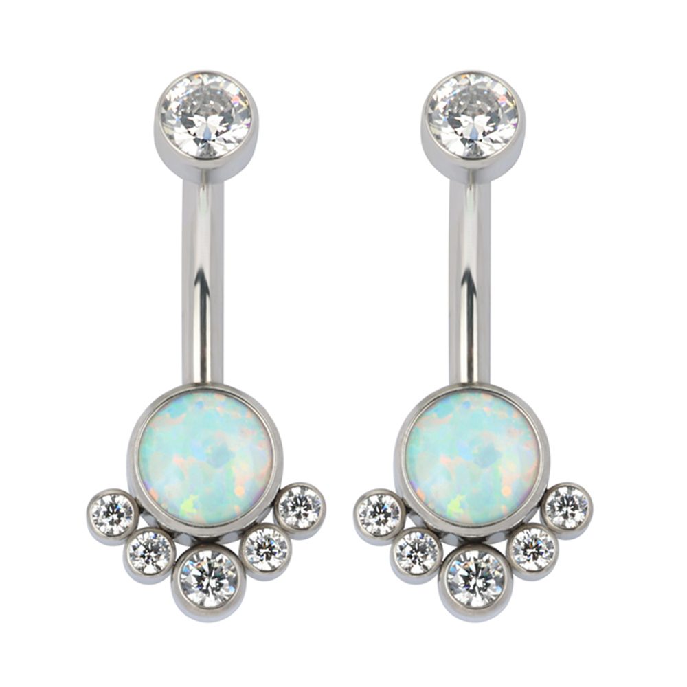Titanium Push In Bezel Set Opal Stone 5 CZ Belly Button Bar