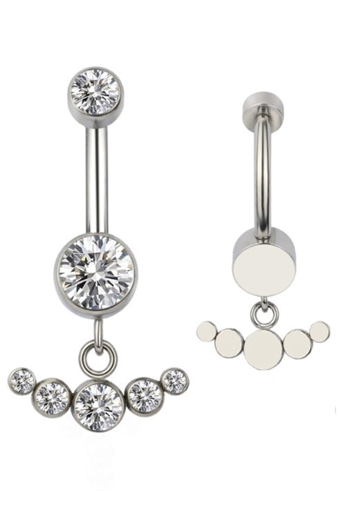 This Titanium Internally Threaded Bezel Set Cz with 5Cz Hanging Belly Button  Bar is perfectly suited for any occasion. It comes in a Silver colours to uniquely fit your style and wants.