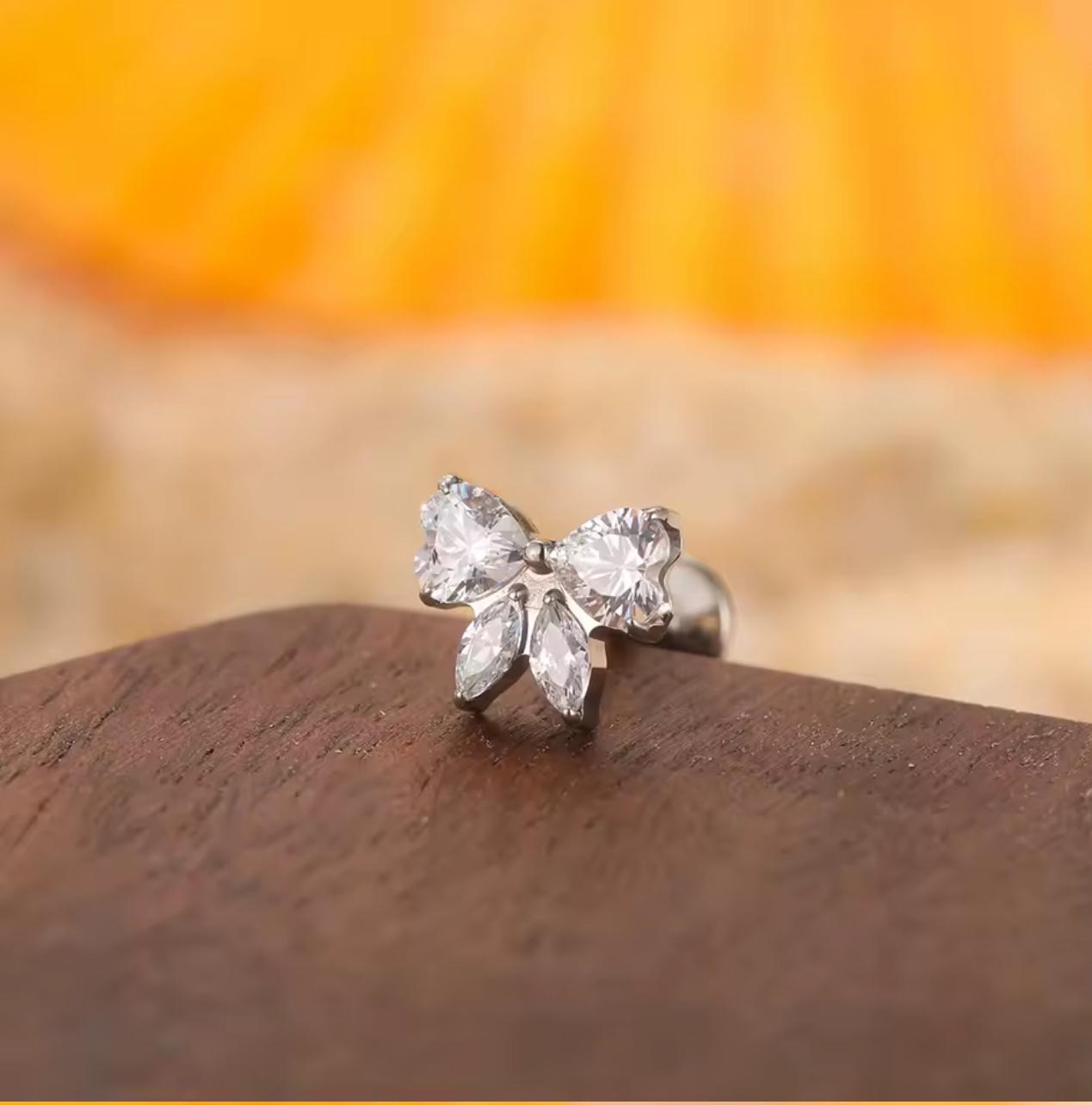 The flatback design ensures maximum comfort, reducing irritation during sleep or daily activities, while the internal threading provides a smooth, secure fit that’s gentle on piercings. The delicate Bow top adds a playful yet elegant accent, perfect for lip, tragus, helix, or other cartilage piercings.