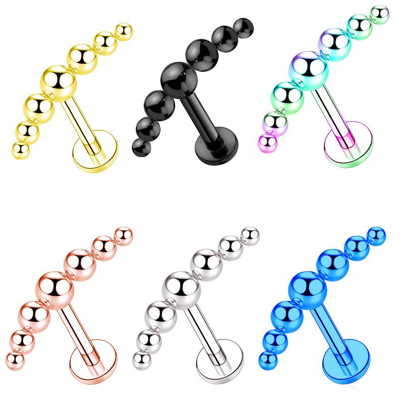 Titanium Flat Back Stud Earring smooth flat back labret is suitable for the tragus, lobe, helix, lip, ear. This delicate piece comes is 6 colours, Gold, Rose Gold, Black, Blue, Silver and Rainbow.