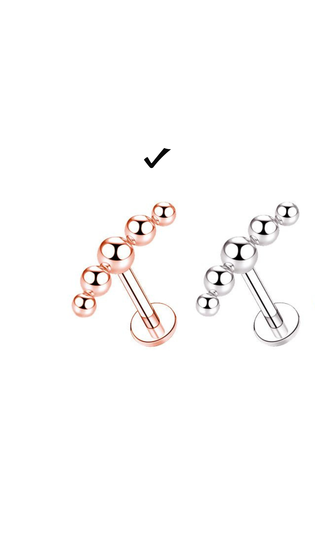 Titanium Internally Threaded 5 Beads Flat Back Stud Earring Rose Gold 1.2mm x 6mm, 8mm, 10mm